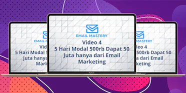 EMAIL MASTERY adalah sebuah panduan video tutorial yang fokus membahas bagaimana cara mendatangkan traffic dari email marketing. Email Mastery akan fokus pada hal hal fundamental dan mendetail tentang bagaimana cara membangun list email yang profitebel dan juga terdapat 3x sesi live class webinar zoom